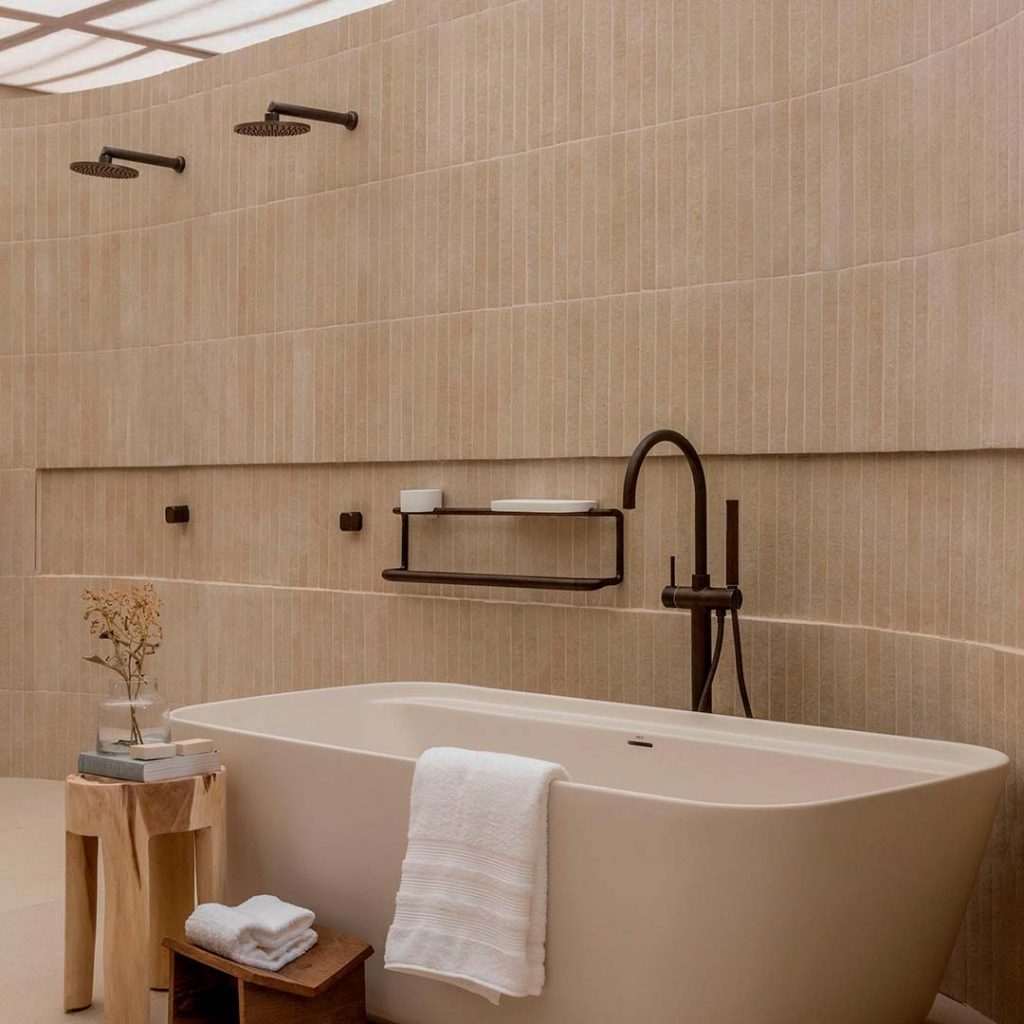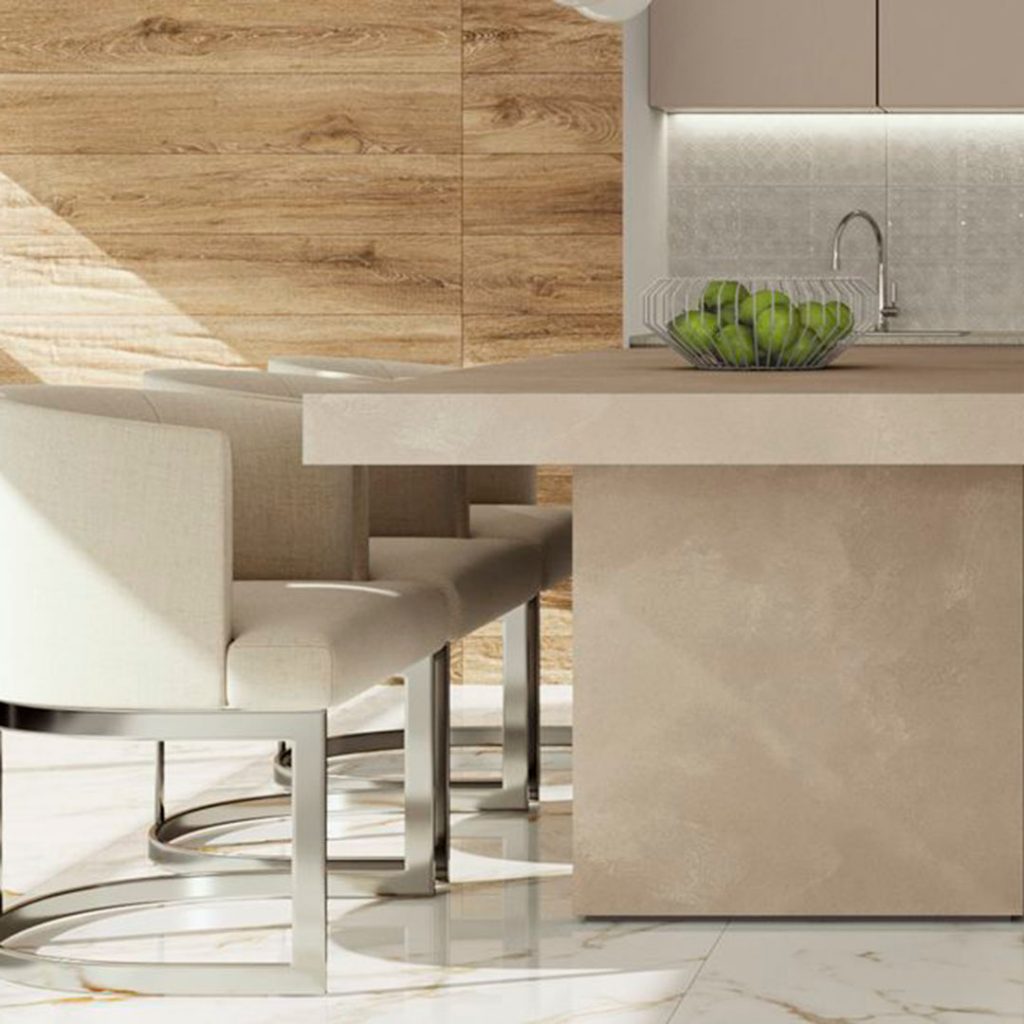 A versatilidade dos porcelanatos Portinari permite seu uso em diversas superfícies, como pisos, paredes e bancadas, otimizando o material e diminuindo sobras.